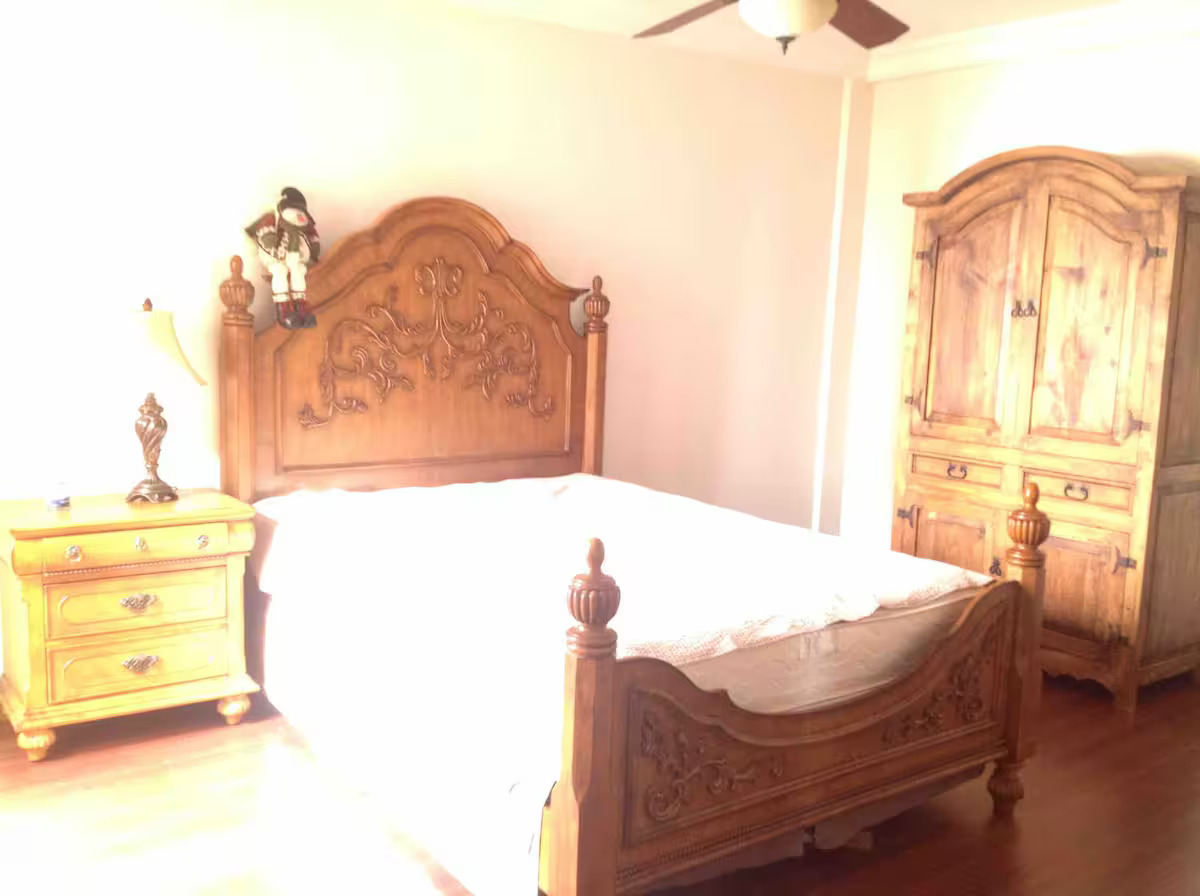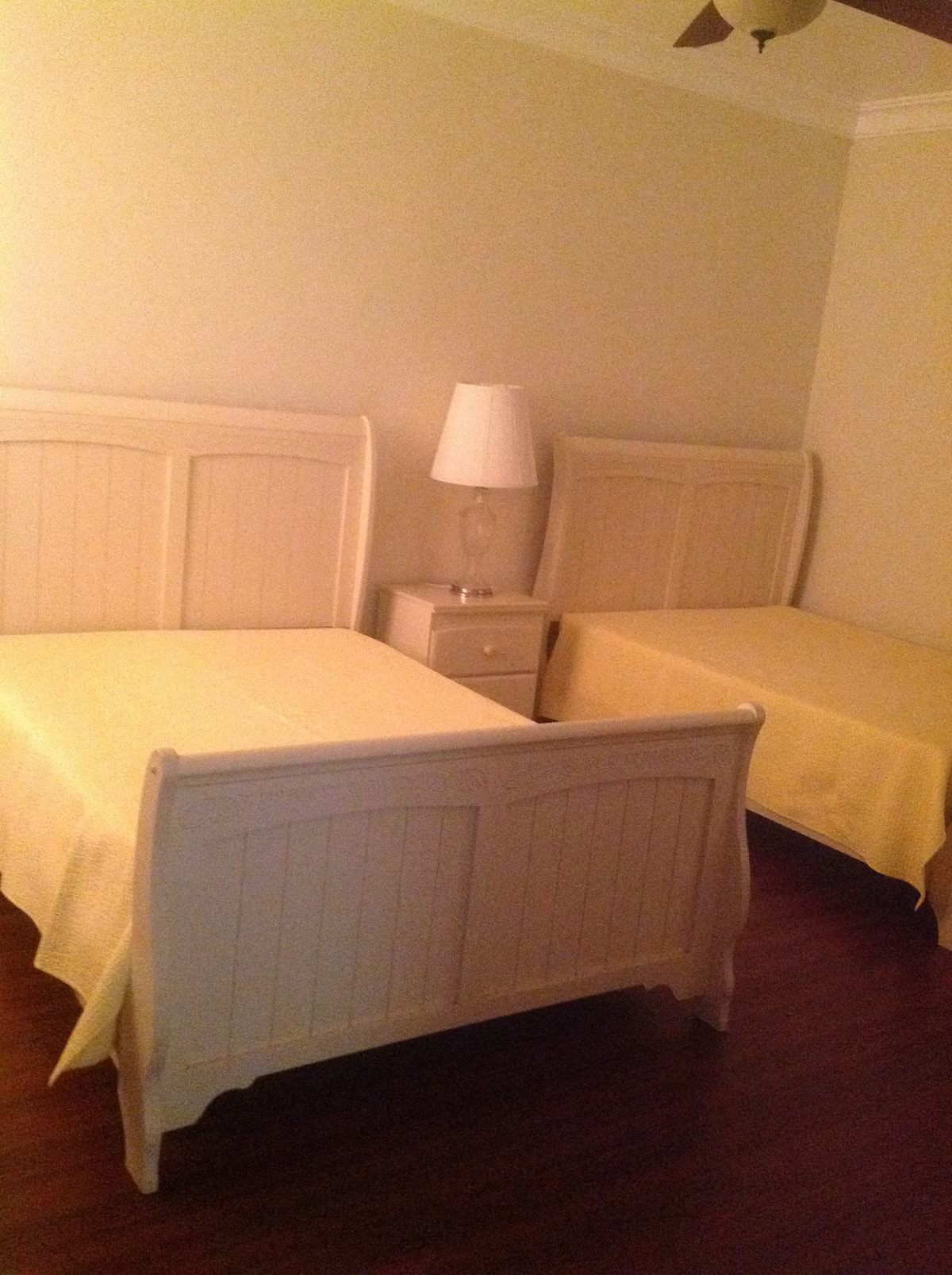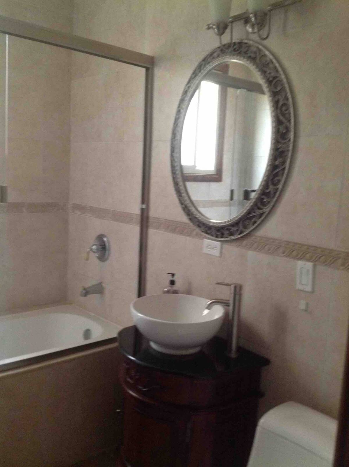 5 bedrooms, 3 bathrooms, 2 terraces, family room, living and dining room and kitchen. We have an outside shower.